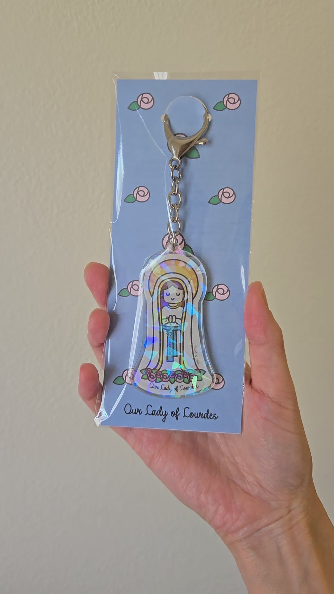 This keychain offers more than beauty—it brings joy, innocence, and daily reminders of Mary's love. Inspired by the imagination of a child and designed to uplift hearts of all ages.